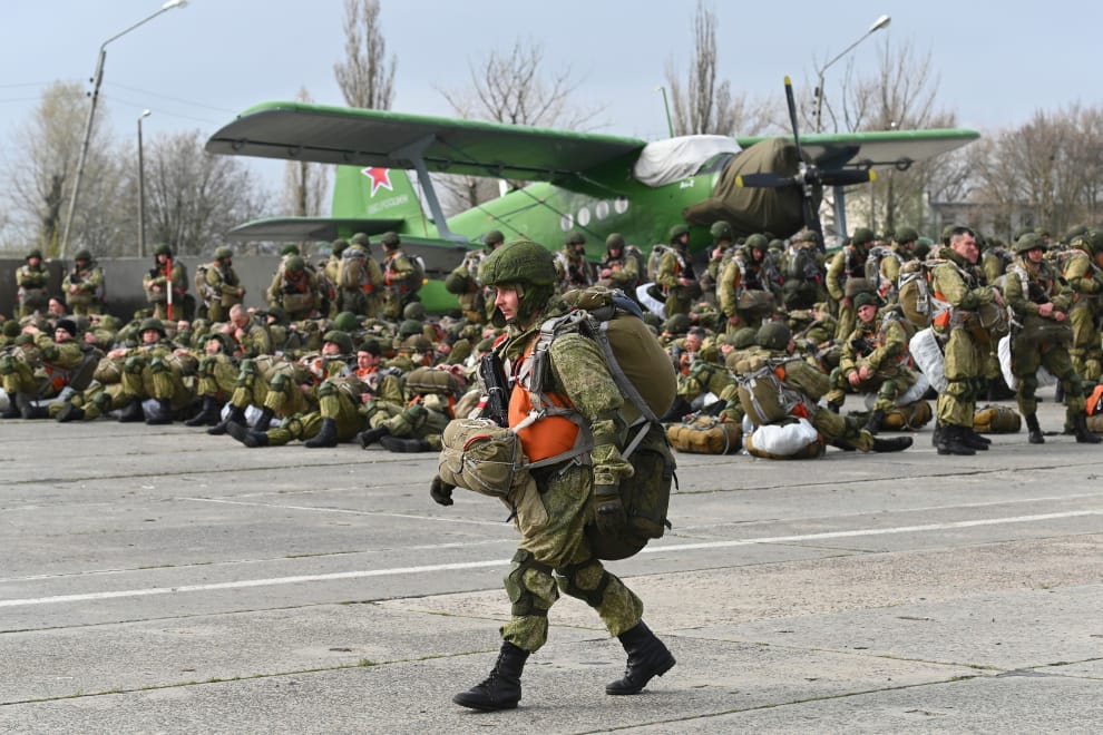 在派遣大批軍隊,讓烏克蘭東部邊境的局勢急遽升溫後,周四俄國政府向前線部隊發出了撤退命令。圖為一名正準備上前搭機的俄國傘兵。