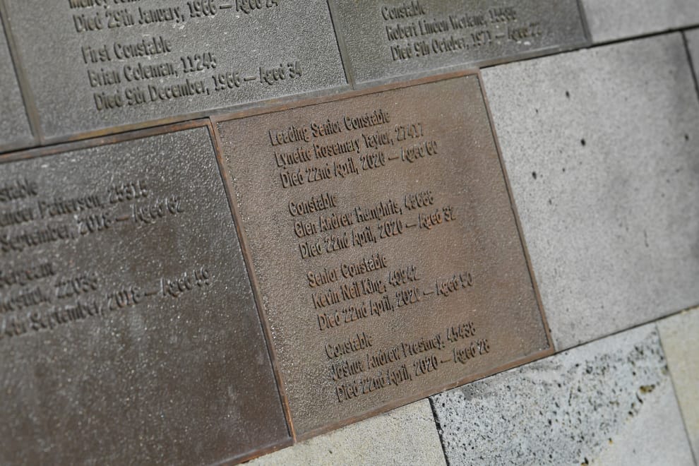 這四名在執勤中不幸喪生的警官,名字被記錄在了墨爾本的警察紀念碑(Police Memorial)上頭,照片攝於 2020年9月29日。