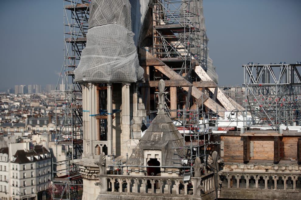 此外,4萬片鷹架拆除的工程遠比想像中更加艱困。由於大火發生當時聖母院正在進行修繕工程,屋頂滿布鷹架,燒熔後的鷹架接近崩塌,拆除過程為了不進一步傷及已被火燒出大洞的建築與施工人員,必須格外小心,一片片拿除,以至於鷹架拆除行動竟耗時半年,直到2020年11月底才大功告成。