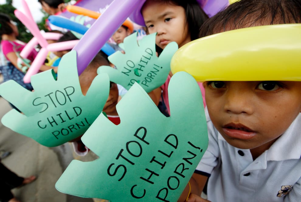 2008年11月,菲律賓孩童手舉寫有「停止兒童色情」字樣的海報,參加反兒童色情活動。