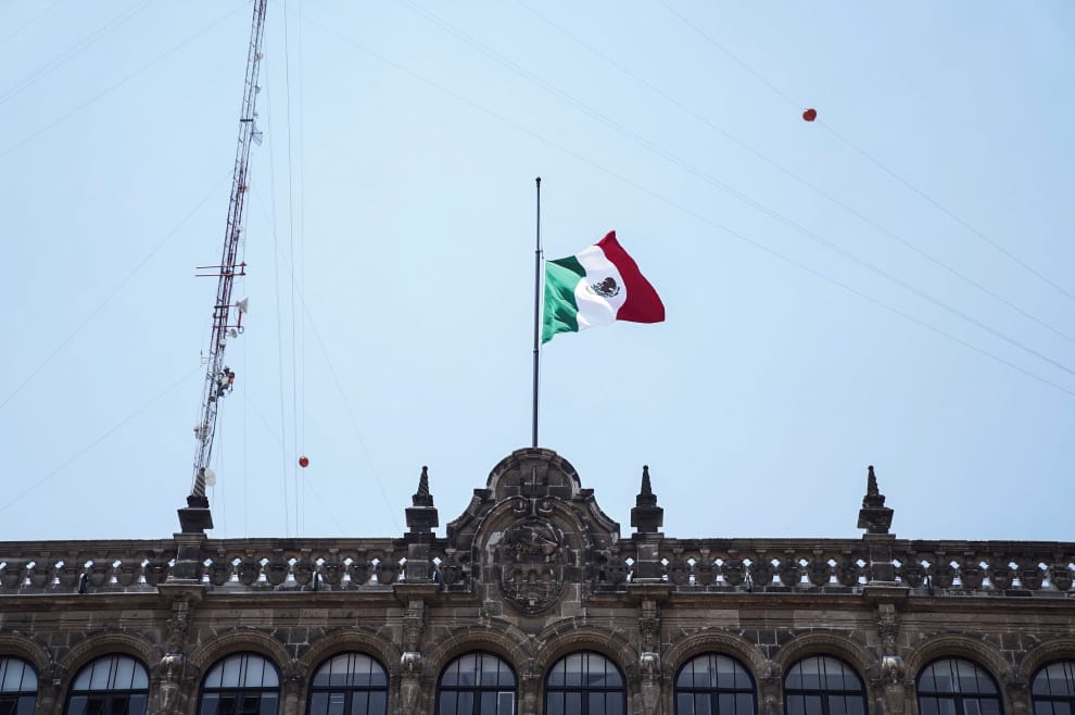 路透社 / 達志影像事發隔天(4),墨西哥政府降半旗表達哀悼。照片攝於墨西哥城的憲法廣場(Constitution Square)。