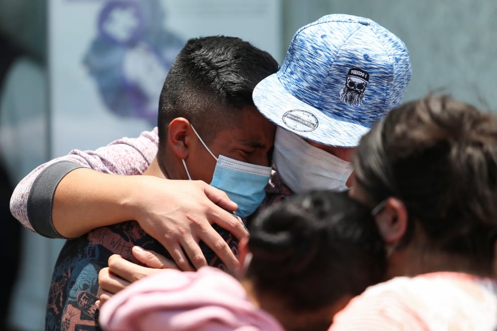 罹難者家屬在鄰近的伊斯塔帕拉帕區(Iztapalapa)檢察署外擁抱著彼此痛哭。