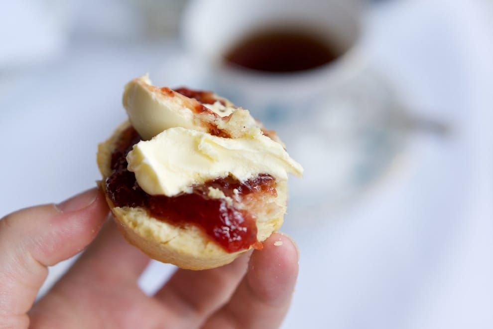 網友Alexandra Kusper鬆圓的司康(Scone),源自16世紀的蘇格蘭,如今成為旅英必嚐的午茶小點。在傳統的三層英式下午茶中,它夾在上層蛋糕甜點和下層三明治鹹點中間,更是「cream tea」(簡易版下午茶,直譯「奶油茶」)的重磅主角。