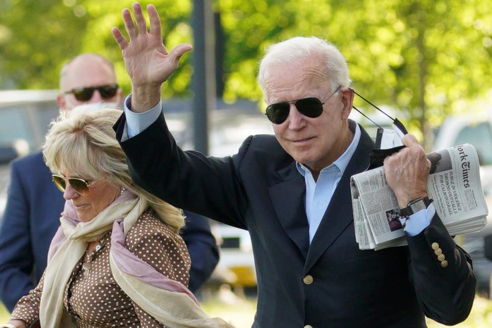 在 5月15日這天,美國總統拜登(Joe Biden)和第一夫人吉兒(Jill Biden)離開白宮、準備前往德拉瓦州時脫下了口罩、向媒體致意。
