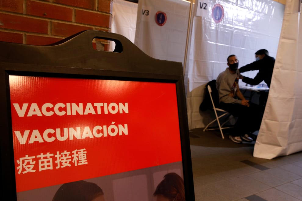 在紐約市布魯克林區一處地鐵站,通勤者正在接種疫苗。