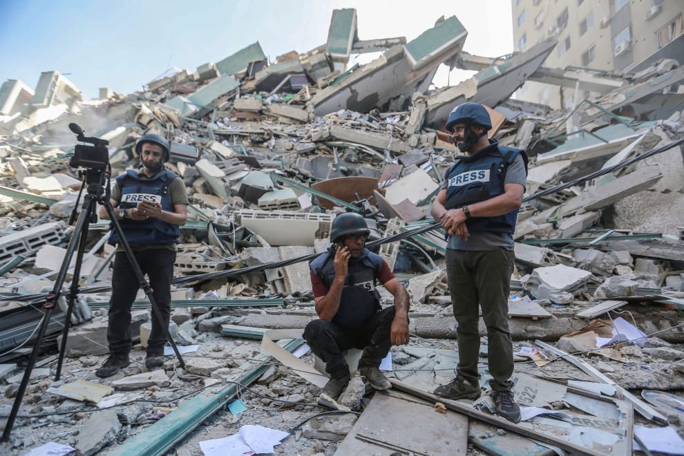 周六(15),以色列軍方以三顆導彈,炸毀了《半島電視台》(Al Jazeera)、《美聯社》(Associated Press)等國際媒體所在的一棟住商混合大樓。雖然以色列軍方已經預留一個小時的時間給大樓裡的媒體、住戶收拾家當,可是當大樓在眼前倒塌時,許多媒體、住戶仍感到十分憤怒與不捨。