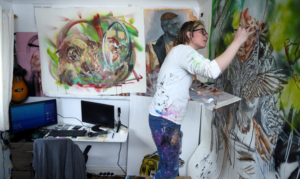 隨著COVID-19(武漢肺炎)疫情來襲,越來越多人開始遠距工作。在愛爾蘭都柏林花旗銀行工作的賈各布(Chelsea Jacobs)將房間改造成了辦公室,並且利用午休時間畫畫紓壓。