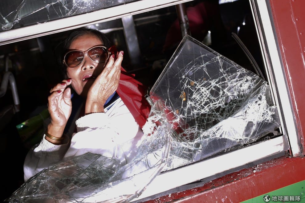照片中是支持政府的民眾,他們前往體育館途中受到反政府分子的攻擊