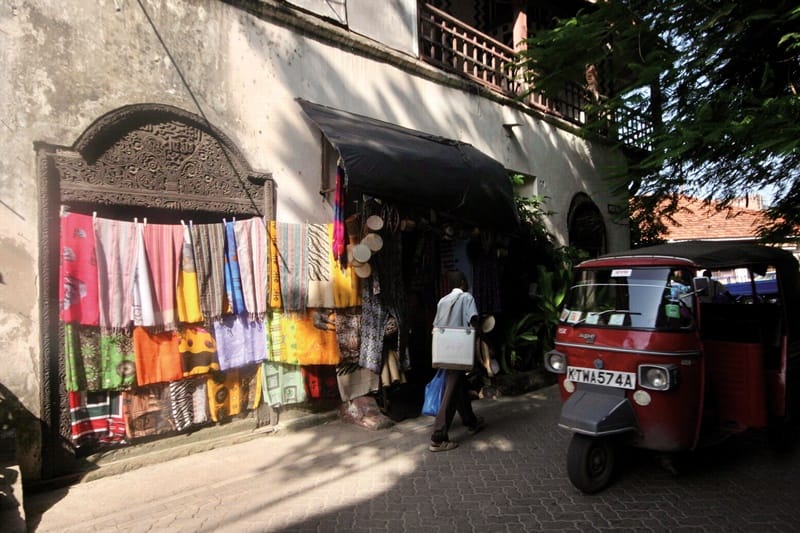 漫步古城區內,氣氛悠閒,由於蒙巴薩的外地旅客以來自歐洲、以色列等地較多,難得看到東方臉孔,有時小朋友就會好奇湊過來,探問遊客從哪兒來。街道上的賣店,有不少是賣織品的,有時轉個彎,也會剛好遇上不大不小的香料市場。有趣的是,在古城內最常見到的交通工具,恰恰是很常在印度街頭見到、搭載遊客的嘟嘟車,又再次見到了多種文化在此交會。