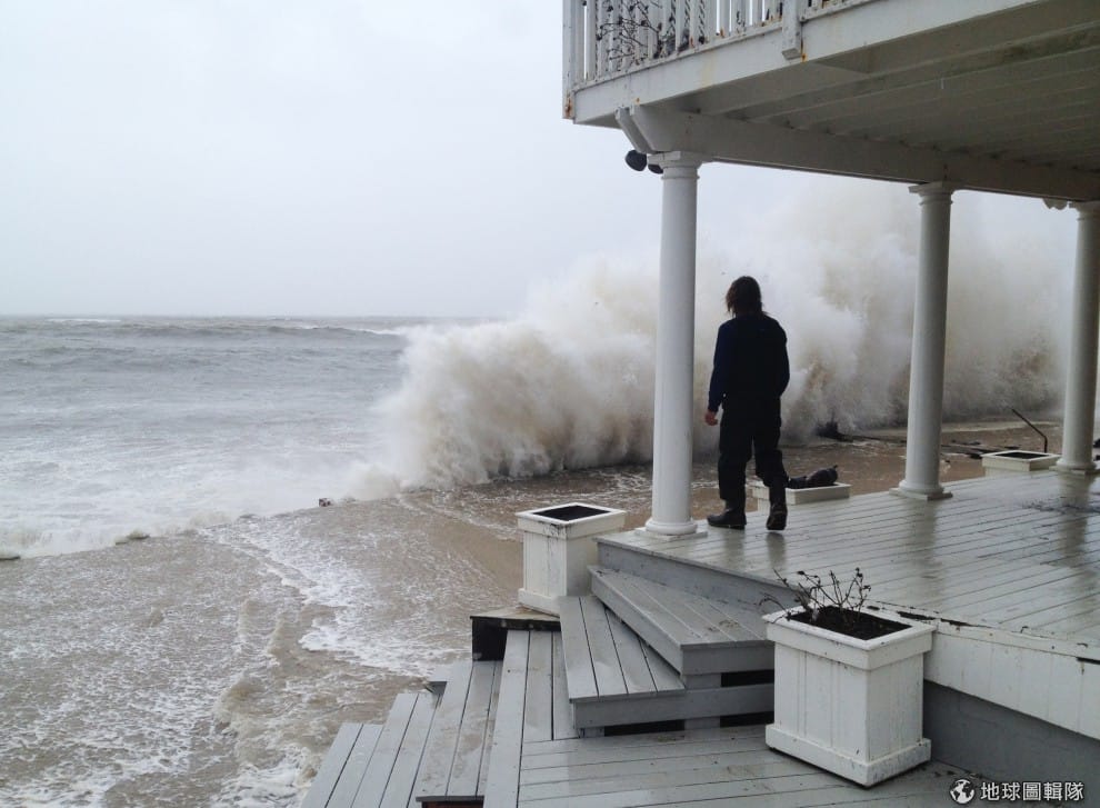 美國麻州沿岸的房舍,被大浪侵襲。圖片來源:Darren McCollester/Getty Images