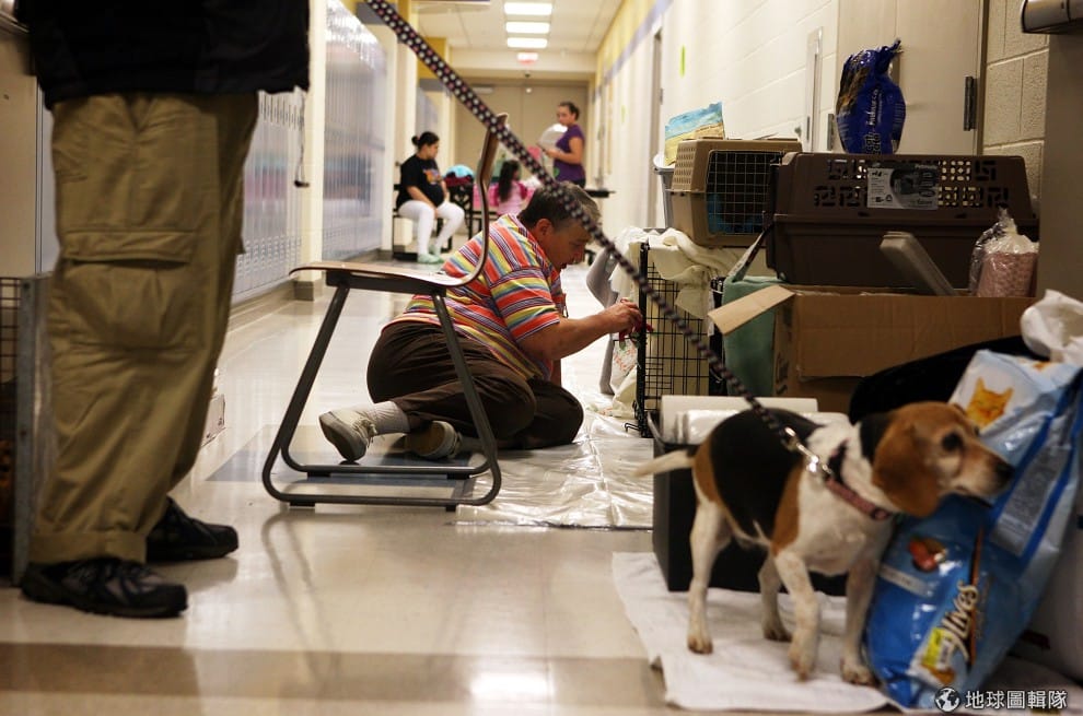 德拉瓦州的居民帶著毛小孩們到學校暫時避難。圖片來源:Alex Wong/Getty Images