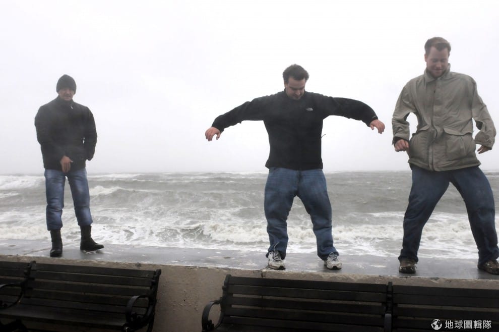 美國麻州海岸正在觀浪的居民,這樣不怕危險湊熱鬧的習慣好像全世界人都一樣!?圖片來源:Darren McCollester/Getty Images