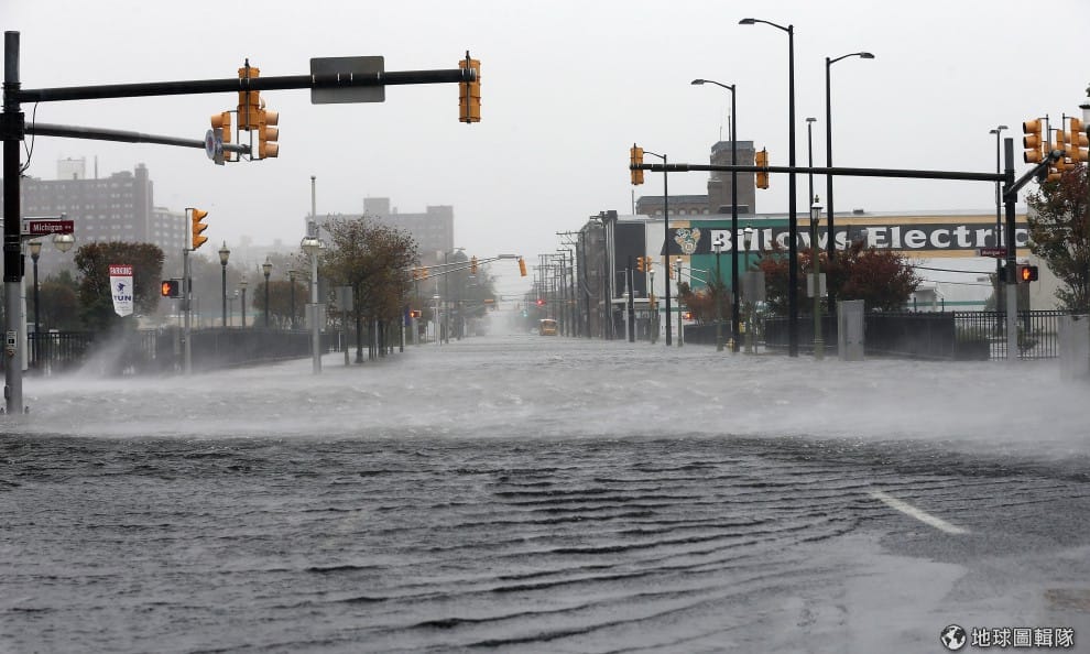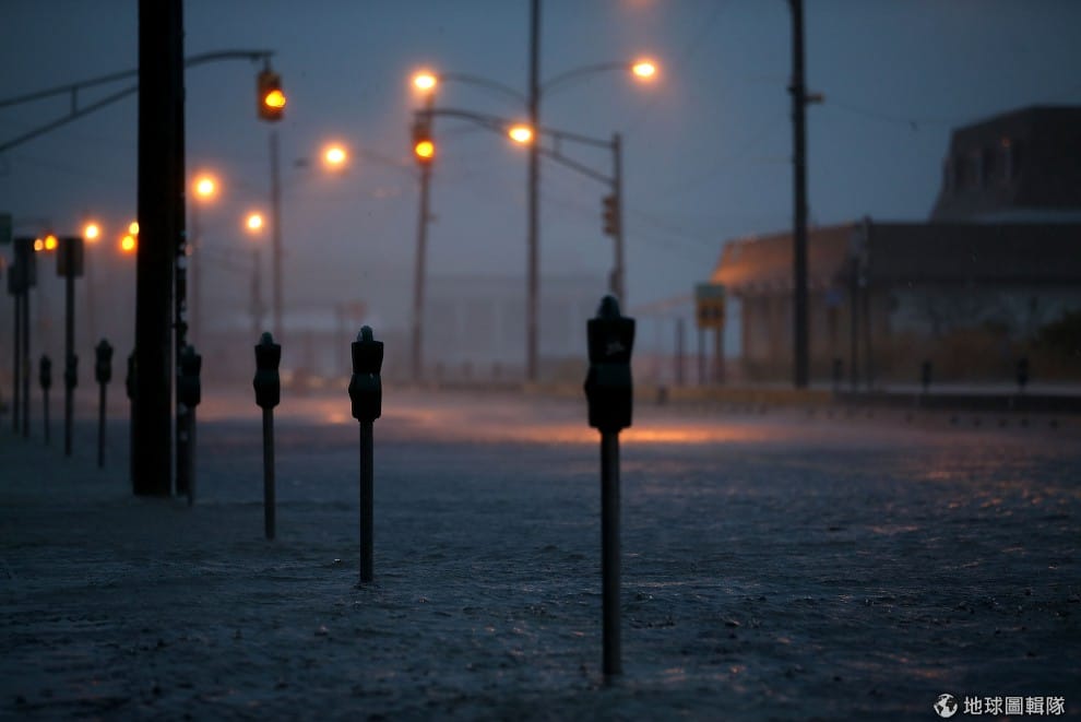 紐澤西當地的街頭已經是汪洋一片,連大浪都看得見!非常誇張!圖片來源!Mario Tama/Getty Images