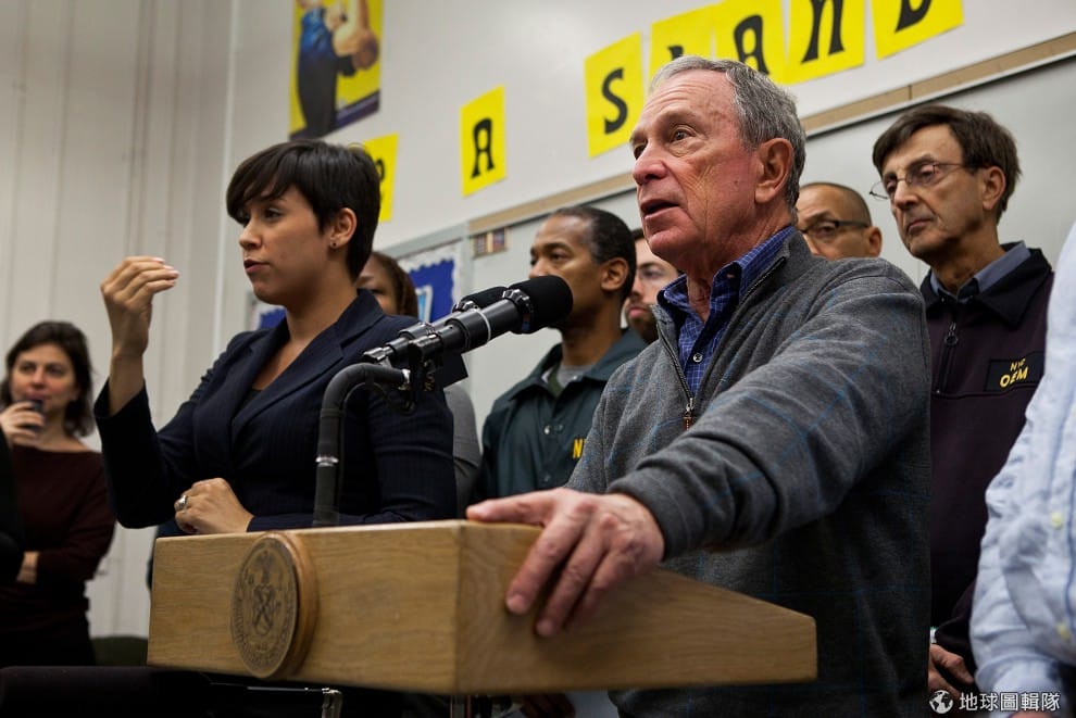 紐約市長彭博正在提醒居民要從低窪處撤離,並宣布周日的教會學校停課。圖片來源: Andrew Burton/Getty Images