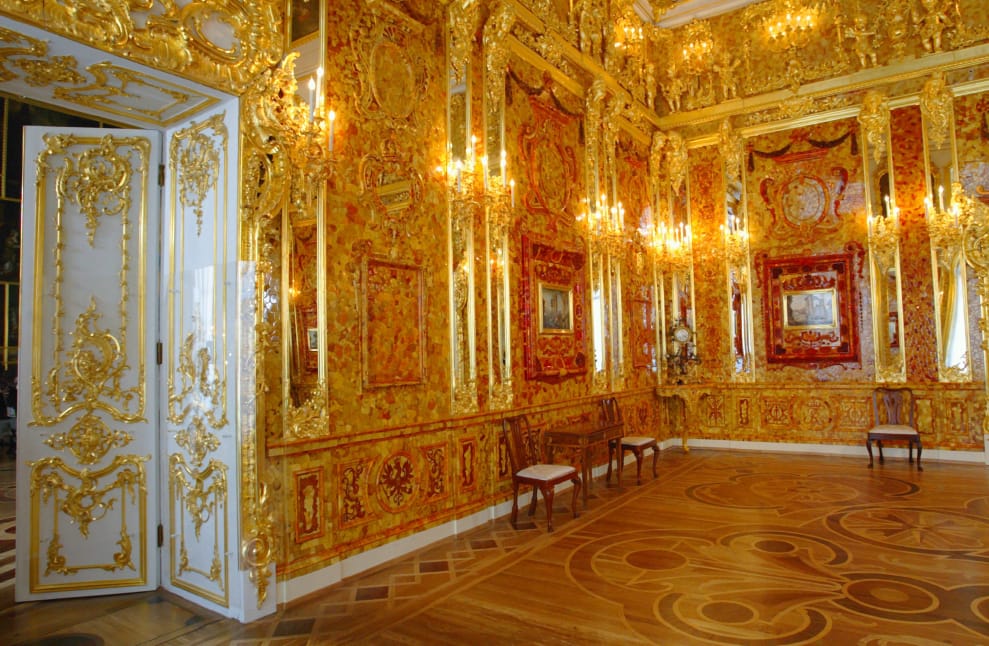 大約在 3、400年前,俄國曾經擁有一間被譽為「世界第八大奇觀」的房間——「琥珀廳」(The Amber Room),房間的嵌板上裝飾熠熠生輝的琥珀,以及無數寶石,四周還點綴著工匠精心雕刻的裝飾。