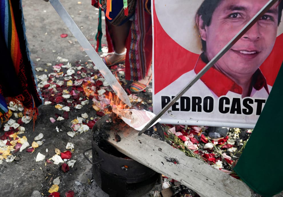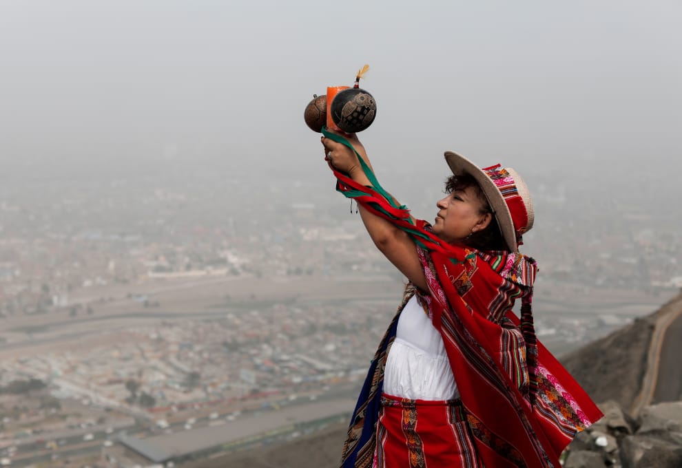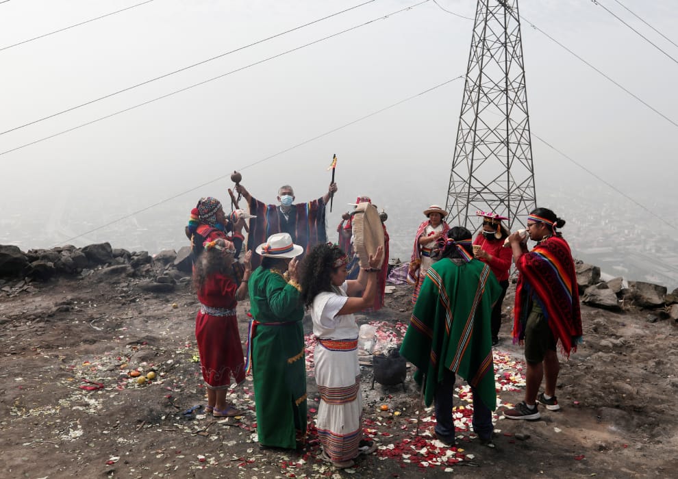 本月 26號,在首都利馬(Lima)的聖克里斯托瓦爾山(San Cristobal hill),一群薩滿穿著色彩繽紛的傳統服飾,在石堆之間焚香、彈奏樂器,舉行古老的預言儀式,他們詢問大地之母「帕查瑪瑪」(Pachamama),究竟是社會主義先驅者卡斯蒂略(Pedro Castillo),還是保守派份子藤森惠子(Keiko Fujimori)會贏得今年的總統大選呢?