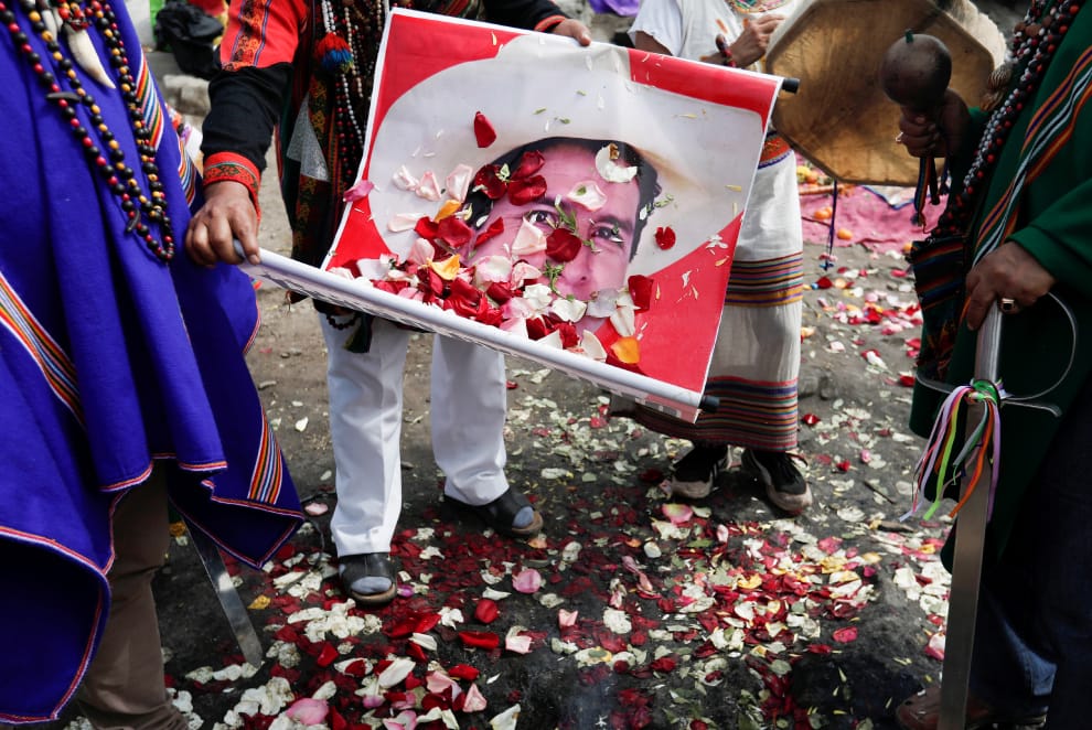 薩滿巫師將花瓣撒上了候選人卡斯蒂略的照片上。