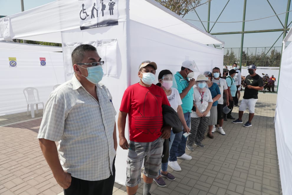 照片攝於今年 4月11日,即秘魯總統大選當日。畫面中,民眾正站在利馬的一處投票所外,等著進入完成自己的選舉義務。