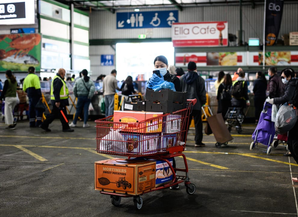 當澳洲開始進入封鎖時期後,如何與一家老小一起度過這段時光,便成了每個澳洲家庭的一大難題。圖為澳洲雪梨的一處市場。