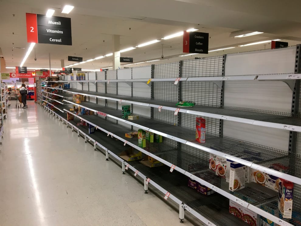 多準備幾份食譜,將有助於在封城,或是無法買到預計中的食品時,仍然能隨手製作出一道道的佳餚。圖為澳洲墨爾本超市裡空空如也的貨架。