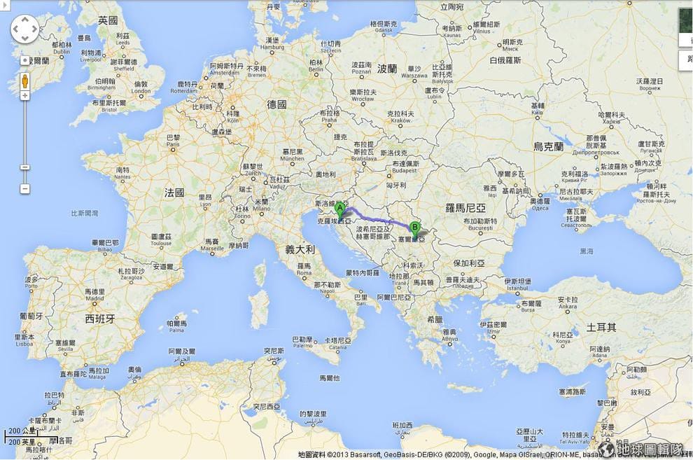 上圖 A點為克羅埃西亞,B點是塞爾維亞。
