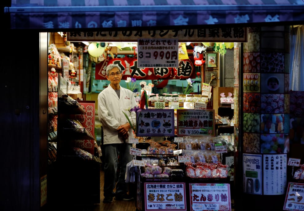 糖果店老闆小澤俊彥站在自家的祖傳店舖裡面。