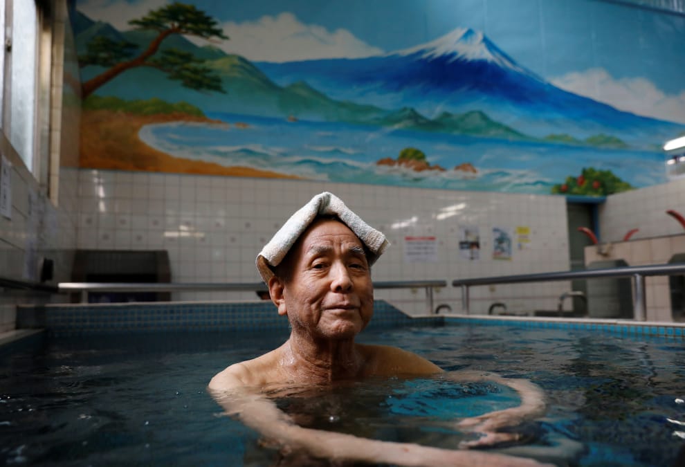 川田五三雄正舒服地在一間公共澡堂泡澡。