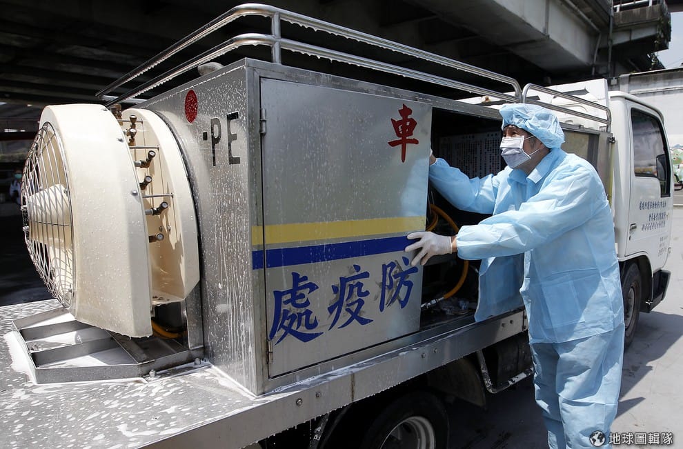 台灣在4月份時傳出確診病例,照片中是新北市的消毒專車