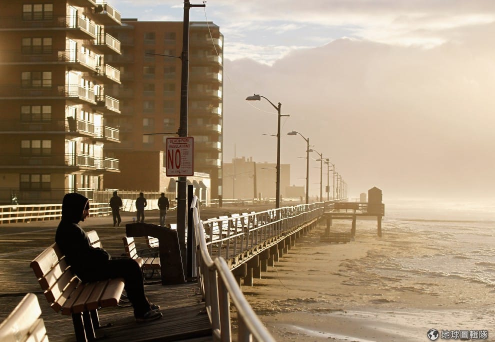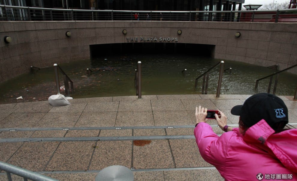 雖然颶風的風雨漸漸平息了,但紐澤西大洋城的建築仍泡在大水中。圖片來源:Mark Wilson/Getty Images