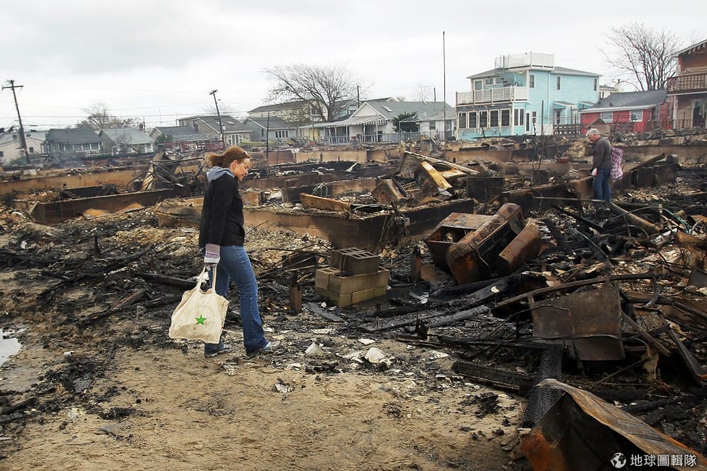 紐澤西的大西洋城居民,只能無言地看著自己家的公寓被吹毀了一半。圖片來源:Mario Tama/Getty Images