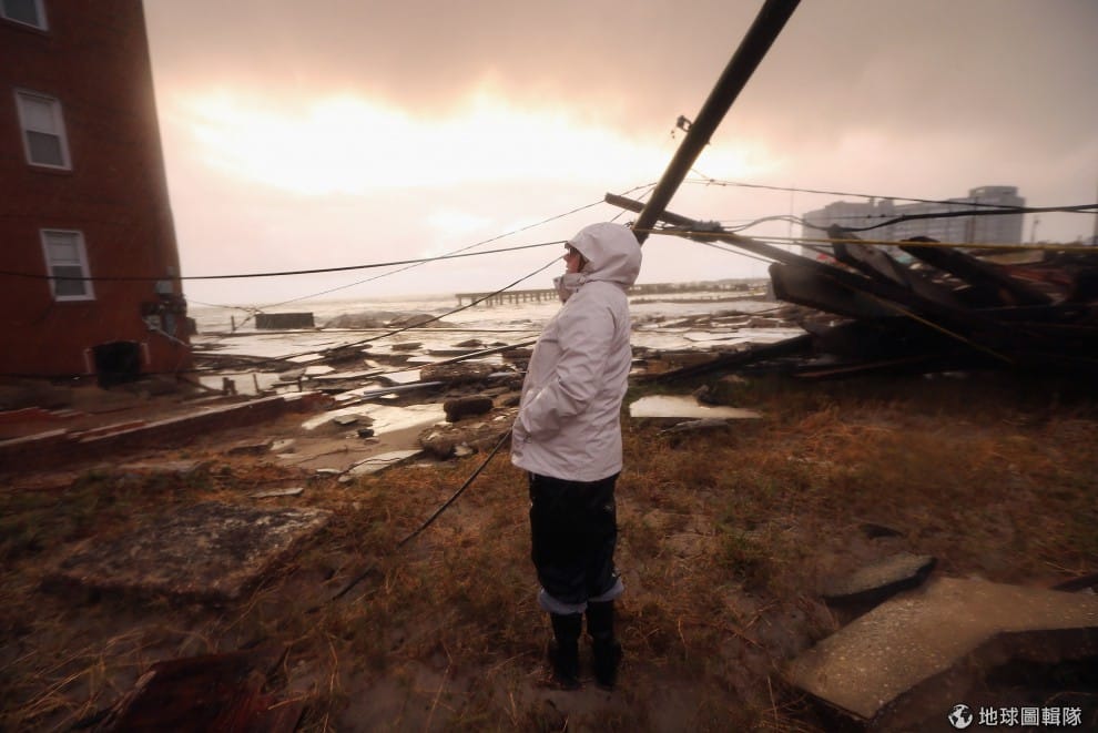 紐澤西海岸旁的公寓,在颶風帶來的大量風雨中顯得岌岌可危。圖片來源:Mario Tama/Getty Images