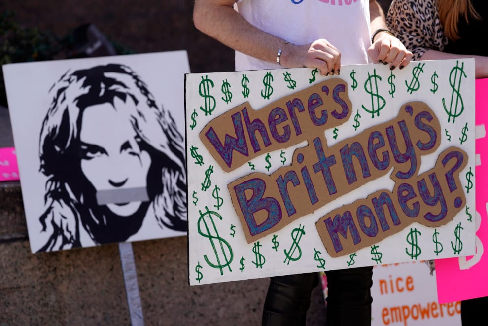 今年 3月17日,同樣在洛杉磯地方法院外頭,布蘭妮的支持者帶著寫上「布蘭妮的錢去了哪裡?」和布蘭妮嘴巴被貼住的肖像看板前來聲援她。當天原本要進行一場關於布蘭妮監護權的聽證會,但布蘭妮和其父親傑米的律師共同提出申請,希望能將會議延後到 4月27日。