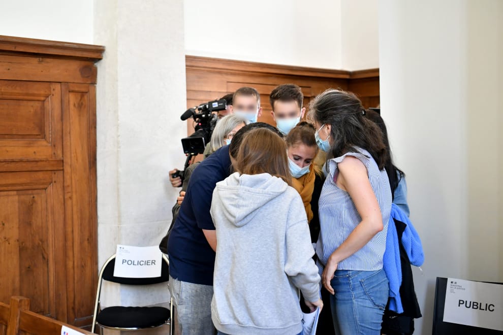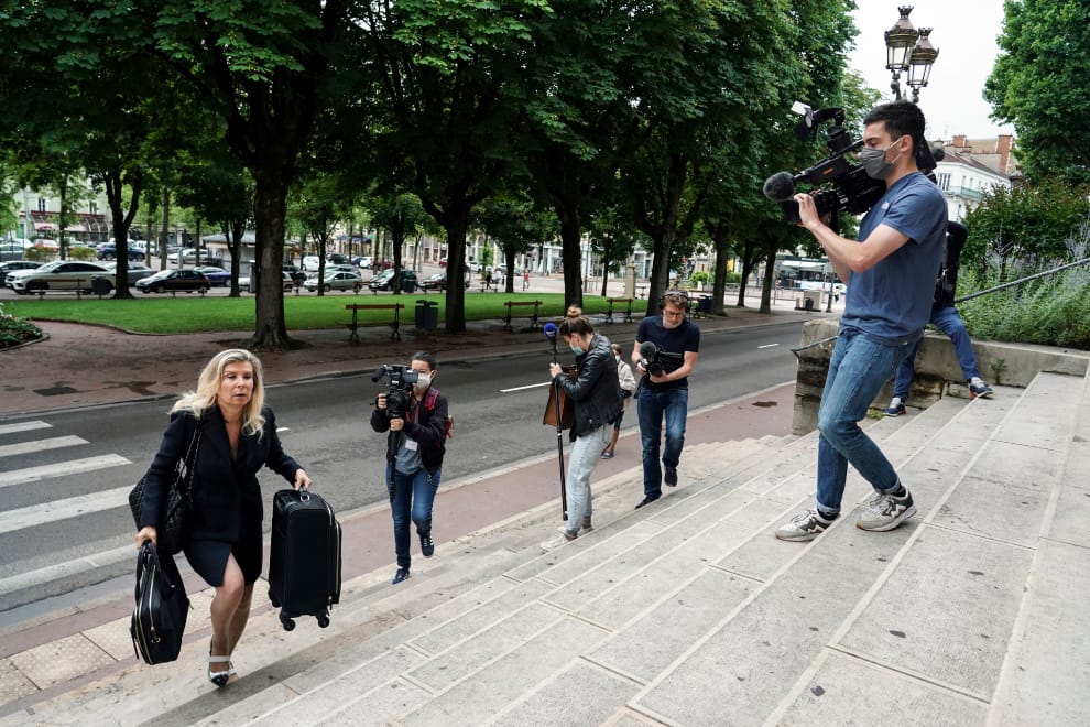 圖為本月 24號抵達法院的芭蔻(黃色圍巾者),她的案子受到了海內外的關注,凸顯了法國家暴受害者的困境。