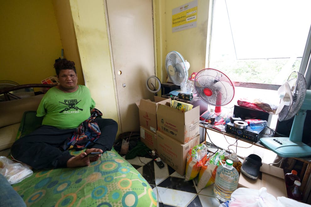 當馬來西亞再次進入封城,天生便沒有雙手、以往靠著賣椰漿飯維生的小販阿都拉也面臨斷炊危機,導致他只好也在屋外掛起白旗向善心人士求助。圖為阿都拉及他懸在窗外的白旗。