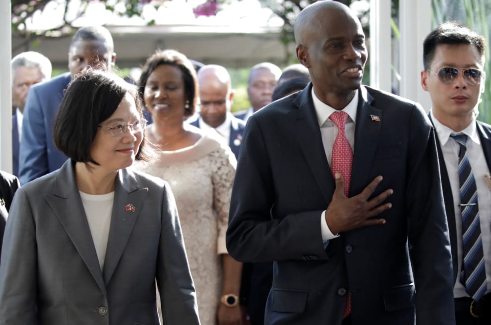 在摩伊士遭暗殺的消息傳來後,包括台灣在內的各國外交部也在第一時間表達慰問之意,而總統蔡英文也在Twitter上強調台灣將與海地共度難關。圖為 2019年總統蔡英文(左)出訪海地,與摩依士(右)一同視察當地舉辦的一場台灣商品展。