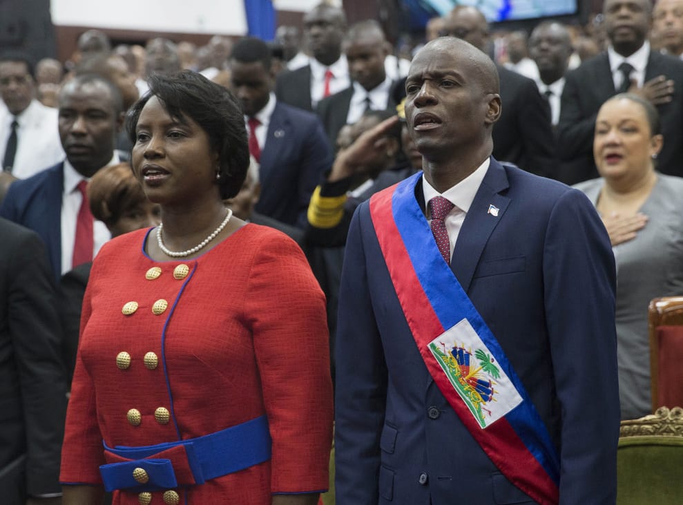 自摩依士上任以來,海地的社會、治安、經濟等各項表現幾乎都逐年走下坡,幫派逞凶鬥狠的情況也不斷惡化。圖為摩依士(右)和第一夫人瑪婷(左)在 2017年的就職典禮。