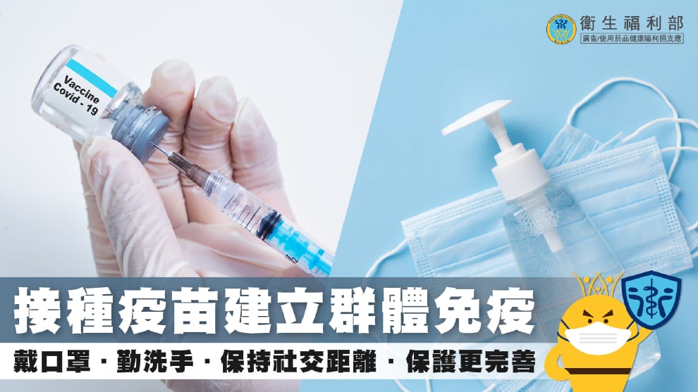 接種COVID-19疫苗能有效避免重症及死亡,即便已經施打疫苗,平時仍要記得戴口罩、勤洗手、保持社交距離,做好個人防護措施就是防疫最大助力。