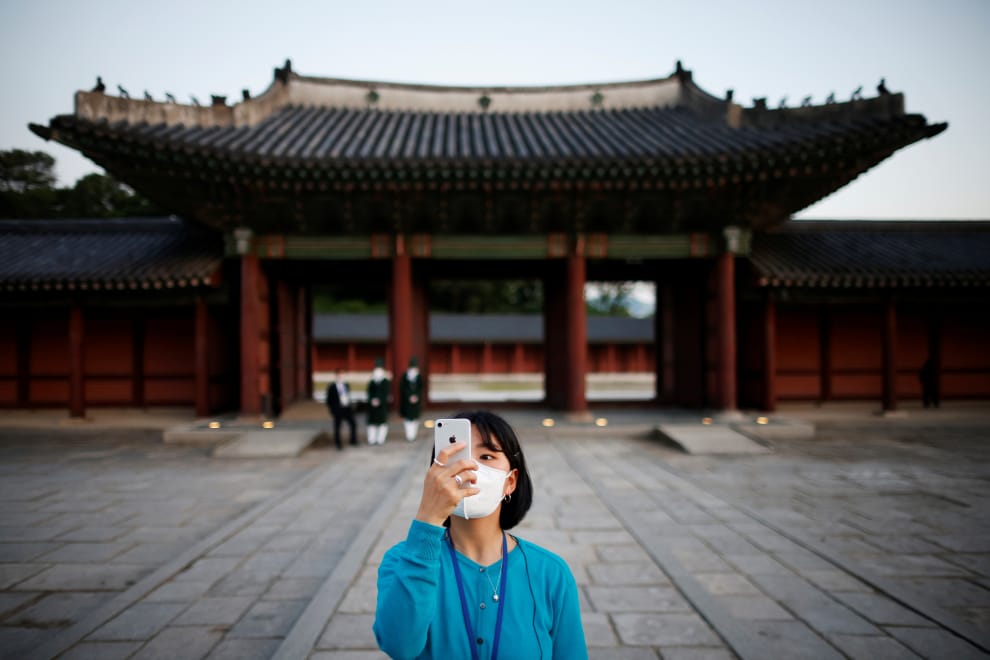 在北韓,觀看南韓的影視作品是被禁止的,遑論模仿裡頭的行為。本照攝於南韓首爾的昌德宮,一名女子正在用手機照相。