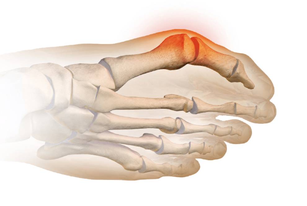 在中世紀英國人的遺骸上,考古學家發現了他們罹患上拇趾外翻的痕跡。圖為拇趾外翻的示意圖。