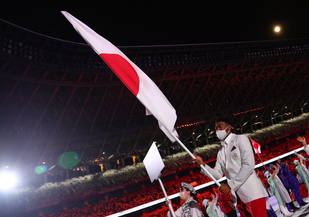 圖為日本籃球選手八村壘,他在 2020東京奧運中擔任日本代表隊的舉旗手。