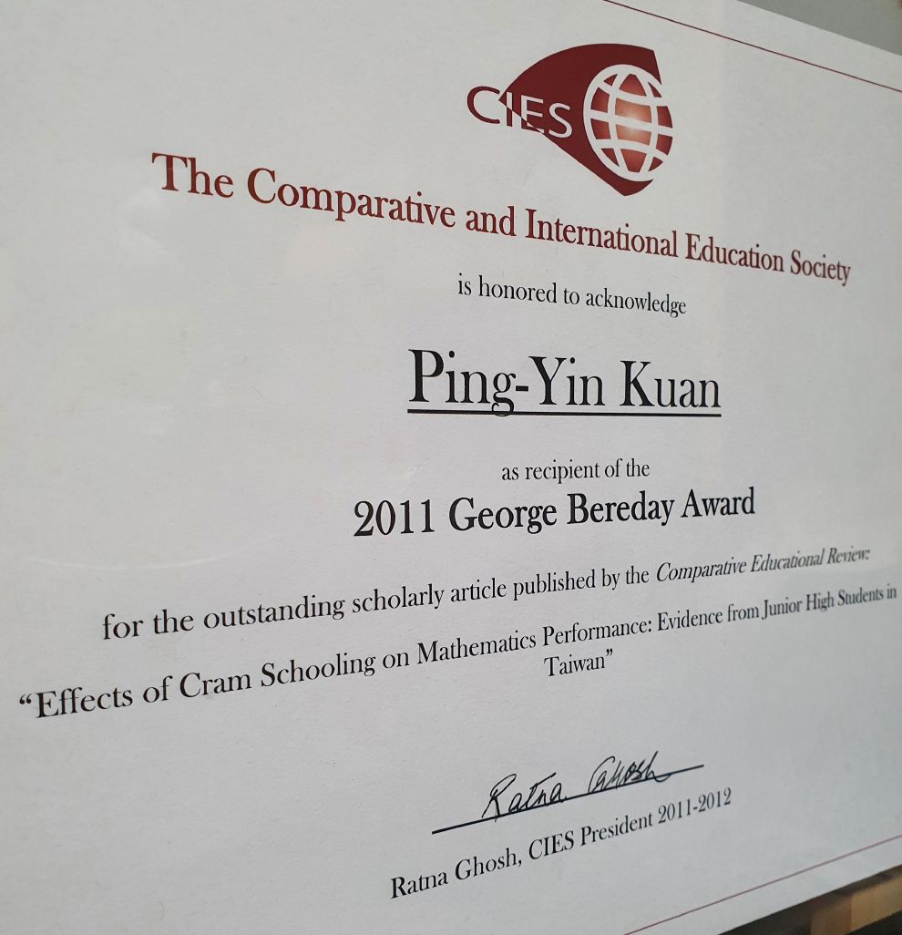 返臺後,關秉寅又自學了兩年,才真正搞懂「反事實法」的相關概念及分析方法,並摸透統計軟體,2008年才有第一篇應用反事實法來做補習影響學習成效的因果推論,嚴謹的分析與對補習議題的關注,其後在此基礎上,進一步研究並投稿比較及國際教育學會(CIES)之旗艦期刊「比較教育評論(CER)」,並於2011年獲得CIES評選為CER當年度最佳論文獎。