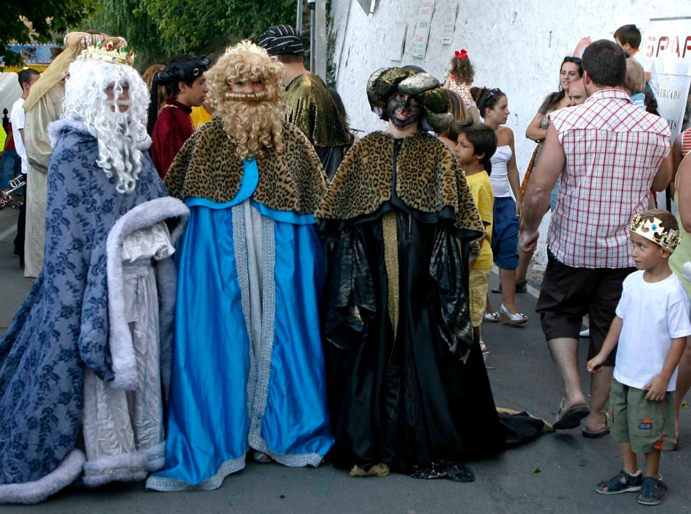 理論上,跨年活動的舉辦時間通常會在每年 12月31日的晚上,唯獨在西班牙南部小鎮貝爾丘萊斯,這裡的大型跨年活動是辦在每年 8月的第一個周六晚上。圖為在 2005年8月的跨年活動上,由貝爾丘萊斯鎮居民所裝扮而成的東方三博士。