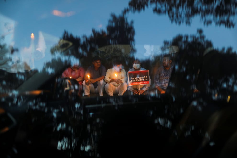 同樣攝於周三新德里的抗議活動,手持標語和蠟燭的人們坐在街頭,希望政府能重視不斷發生的性侵事件,並嚴懲本次案件的兇手。