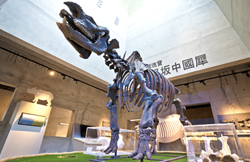 博物館中的每一件化石,都是古生物學家慢慢挖掘、清修完成的,圖中為早坂中國犀的全身骨架化石,出土於台南左鎮菜寮溪,現展於台南左鎮化石園區。圖/台南左鎮化石園區