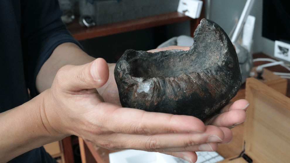 從蔡政修教授的言談中不難發現他對古鯨豚的癡迷,興奮地跟我們展示研究室裡的化石收藏。圖/科技大觀園拍攝