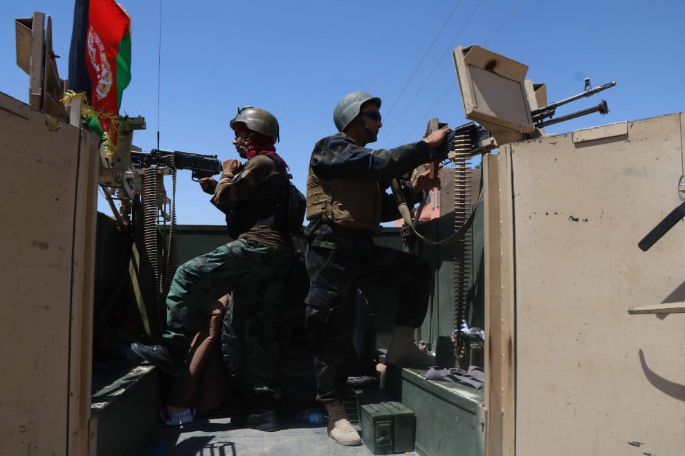 儘管阿富汗眾多城市正急速淪陷,可是美國總統拜登目前仍沒有要改變美軍撤離計畫的意思。圖為在奪回赫拉市部分地區的控制權後,開著軍用汽車上街巡邏的阿富汗士兵。