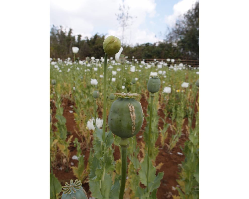 盛開的罌粟花田,景色至美。罌粟是鎮靜劑的原料,提煉後可製成鴉片、海洛因、嗎啡,泰國、緬甸、寮國過去為產地,曾被稱為金三角地帶。
