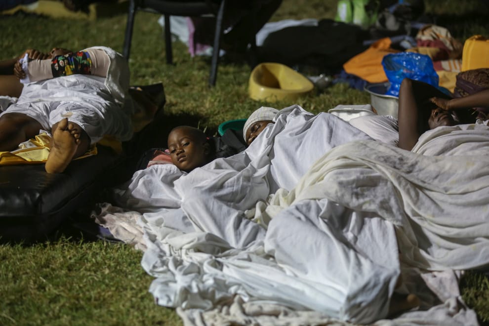 美聯社 / 達志影像在萊凱,因為家園被地震震垮了,無家可歸的人們只好暫時在醫院外頭的草皮上過夜。