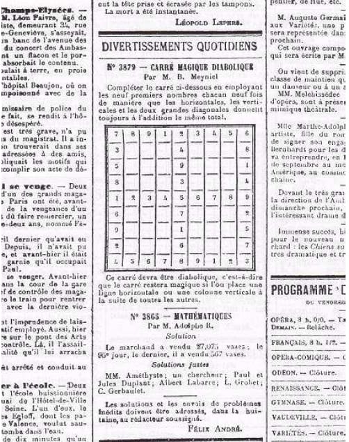 在 1895年7月6日的法國財經報紙《法國》上,刊登出了數獨遊戲的雛形「邪惡魔法方陣」。