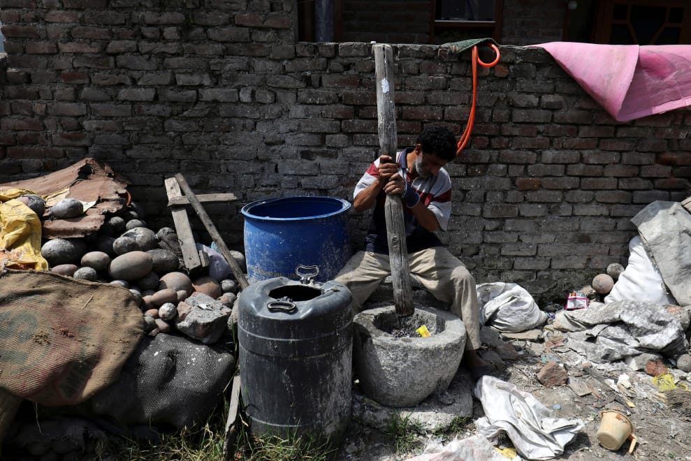 紙漿藝術的創作過程可以分成Sakthsazi、Naqashi兩大部分。圖為一名紙漿藝術的工匠正在準備日後創作用的紙漿。